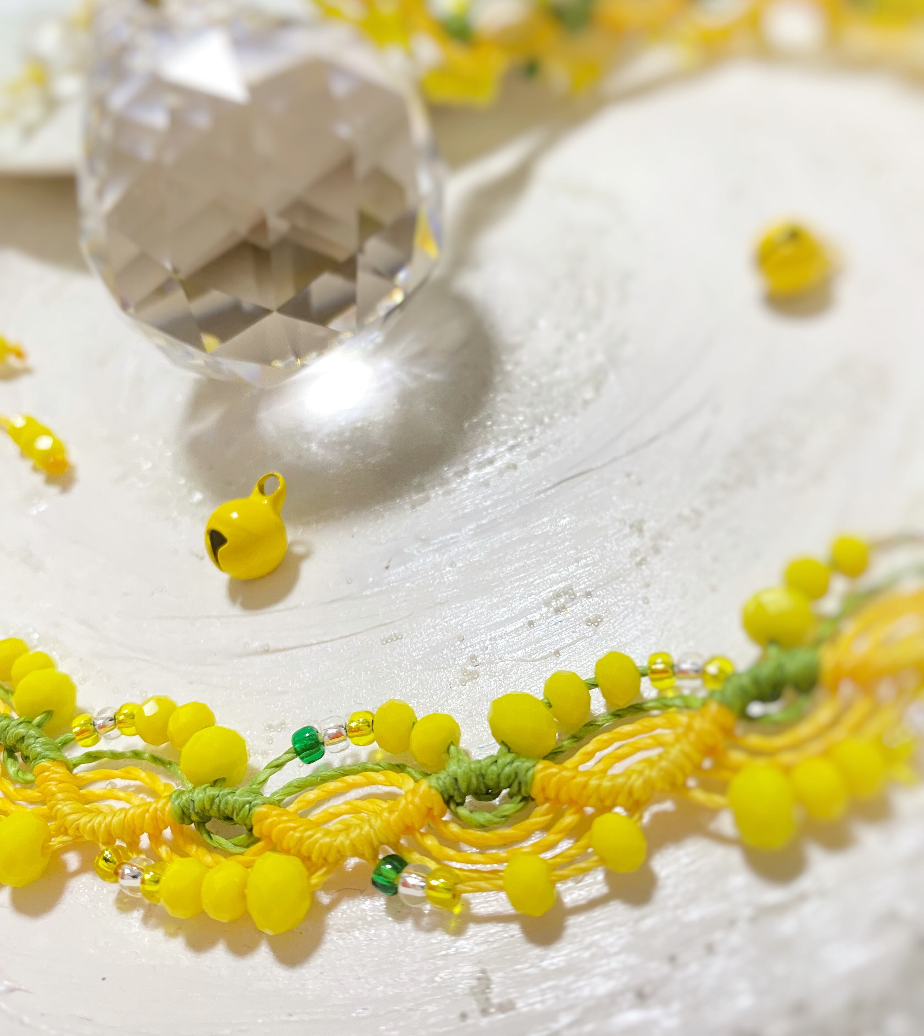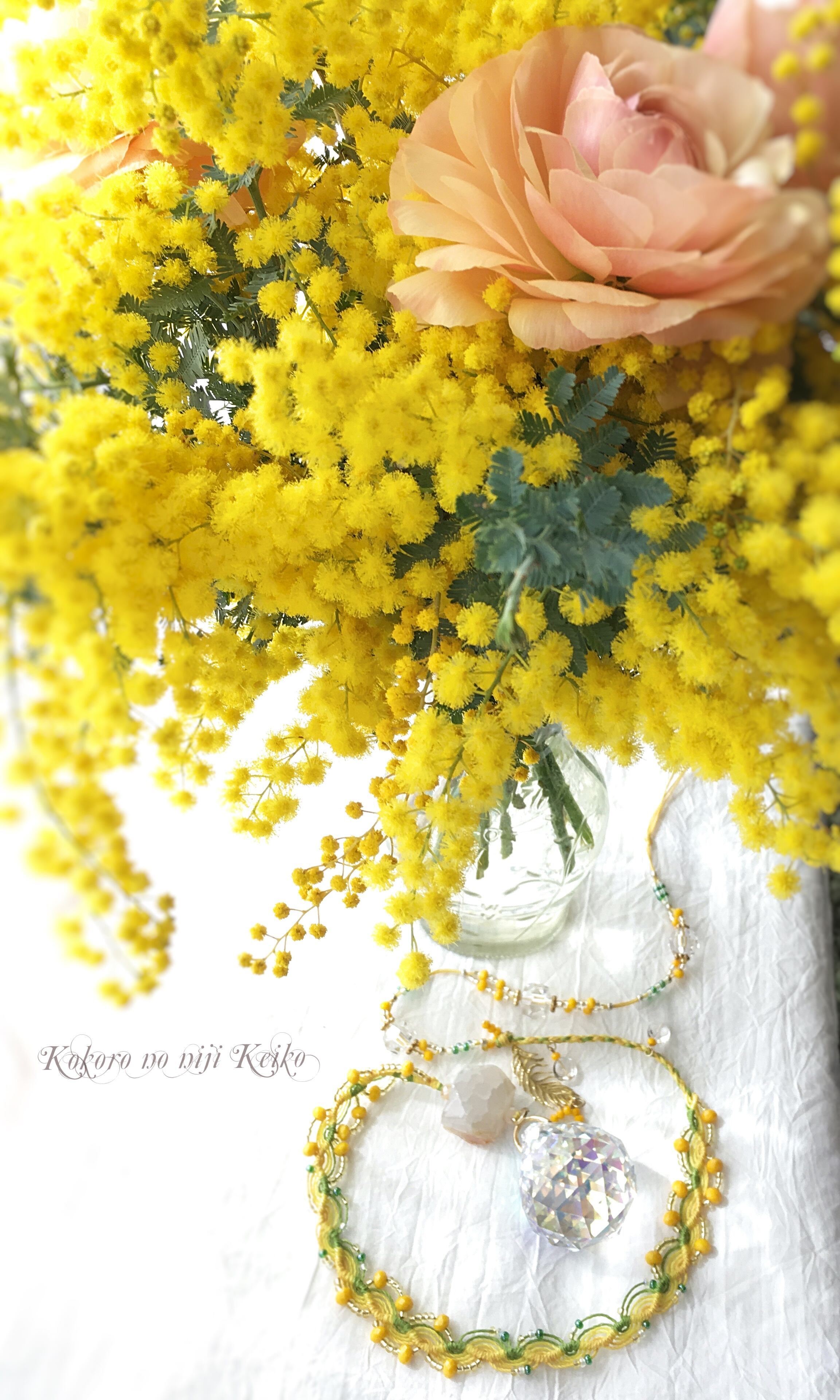 小さな黄色い鈴をちりばめた 新作ミモザが完成しました。